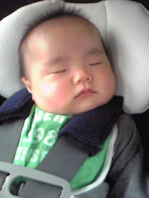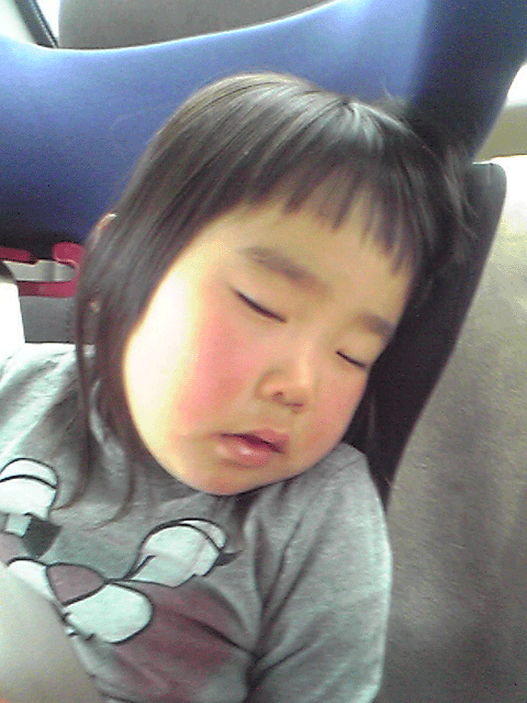 車に乗り、5分でKOです☆ アンパンマンの夢でも見てるかな~