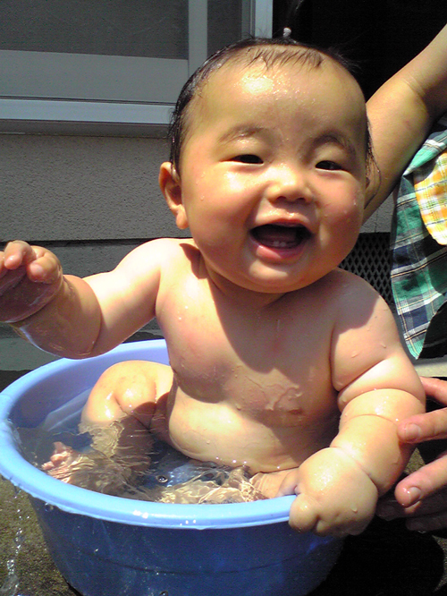 陽さん初!! 行水!! 見て下さい!!この嬉しそうな顔笑。